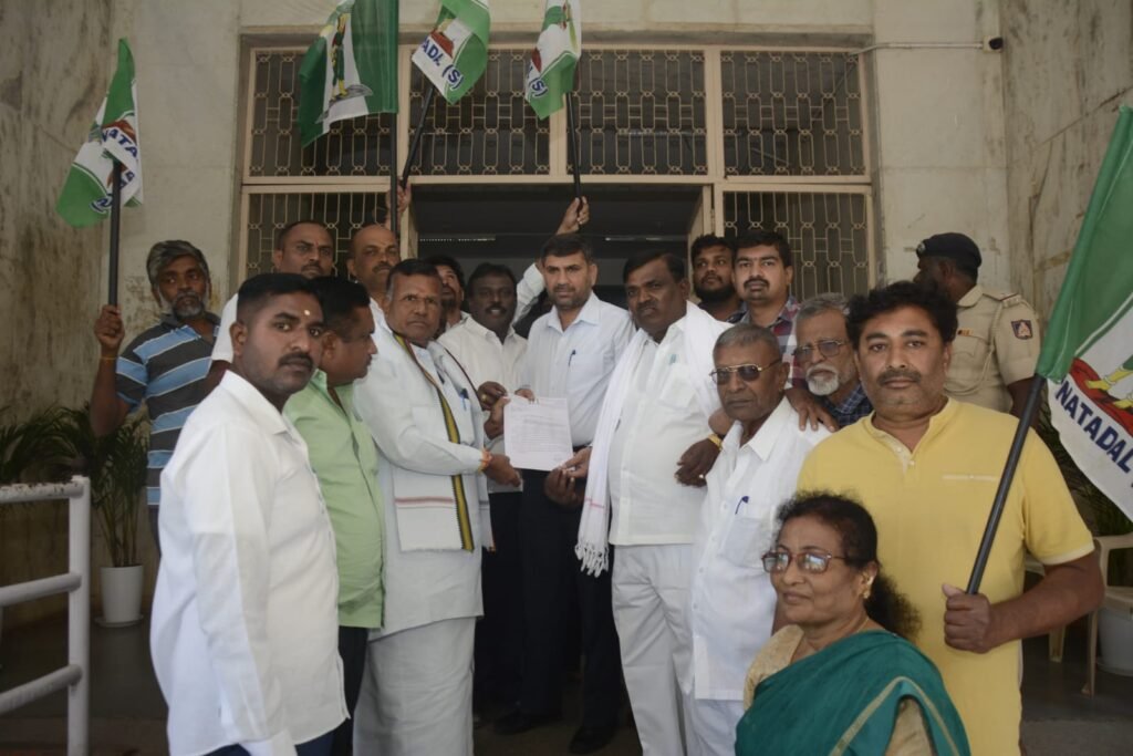ತುಮಕೂರು: ರಾಜ್ಯ ಸಾರಿಗೆ ಸಂಸ್ಥೆಯ ಬಸ್ ಪ್ರಯಾಣ ದರ ಏರಿಕೆ ಮಾಡಿರುವ ರಾಜ್ಯ ಸರ್ಕಾರದ ಕ್ರಮ ಖಂಡಿಸಿ ಜಿಲ್ಲಾ ಜೆಡಿಎಸ್ ಬುಧವಾರ ನಗರದಲ್ಲಿ ಪ್ರತಿಭಟನೆ ಹಮ್ಮಿಕೊಂಡಿದ್ದು. ಏರಿಸಿರುವ ಪ್ರಯಾಣ ದರ ವಾಪಸ್ ಪಡೆಯಬೇಕು ಎಂದು ಒತ್ತಾಯಿಸಿ ಮುಖಂಡರು ಜಿಲ್ಲಾಧಿಕಾರಿಗಳ ಮೂಲಕ ಸರ್ಕಾರಕ್ಕೆ ಮನವಿ ಪತ್ರ ಸಲ್ಲಿಸಿದರು.